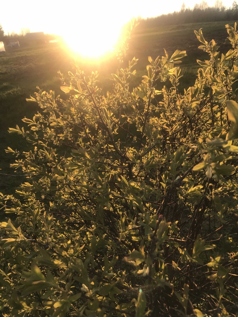 После обеда немного прокопал грядки — уже последние, под цветы, сделал обход сада. Деревья и кусты вышли из подавленного состояния, ударились в рост, зацвели, возрадовались — как будто и не было этого заторможенного месяца. Вот что тепло животворящее делает!