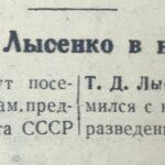 После этого еще добрых два десятка лет в биологии господствовали псевдонаучные идеи Лысенко, затормозив развитие науки. Только ко второй половине XX в. наука смогла постепенно от них очиститься и войти в нормальное русло. Спасибо нашей газете и Российской Национальной Библиотеке, которые сохранили для нас этот любопытный факт о визите Лысенко – это ведь тоже часть нашей истории.