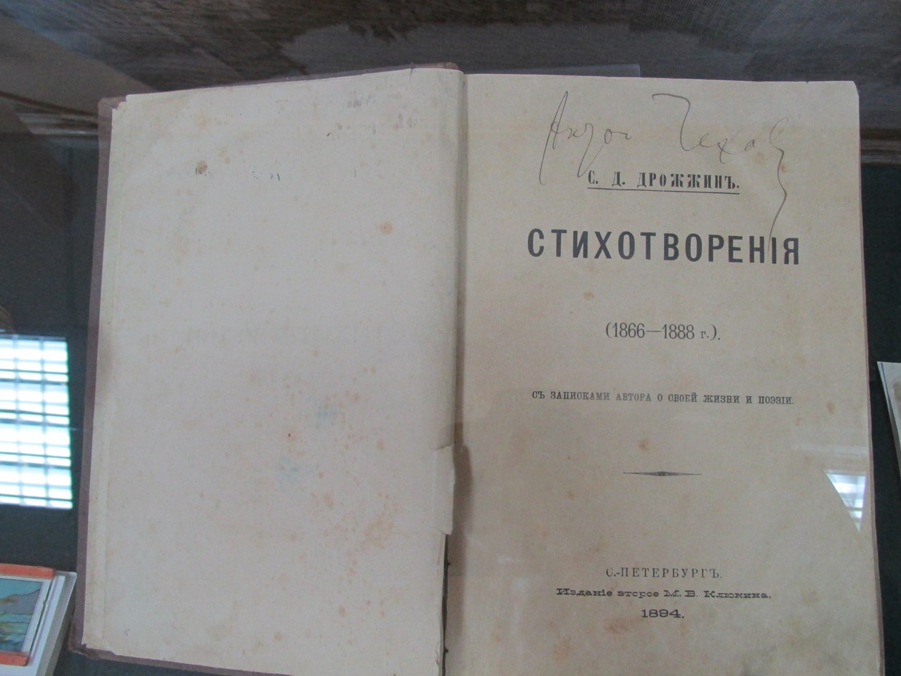 Был этим летом в Мелихово, в музее А.П. Чехова. Увидел в одной из витрин книгу «С. Дрожжин. Стихотворения» с автографом Антона Павловича. Видимо, очень ценил Чехов талантливого поэта-самоучку из крестьян.