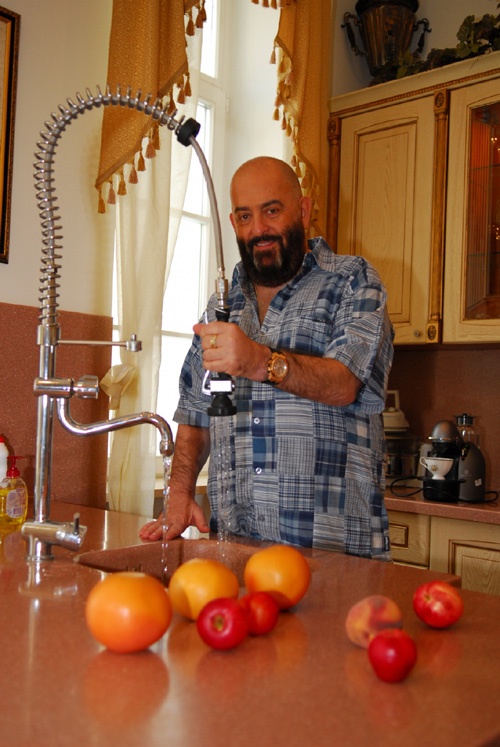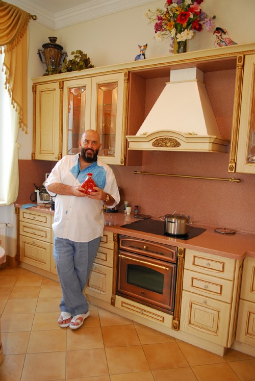 -Мебель обязательно должна быть функциональной, но если она мне не нравится, то никакие функции не спасают. Например, в мебели кабинета практически нет украшений, самое яркое «пятно» — вставки корня карельской березы. Мне нравится эта спокойная лаконичность. Это меня не отвлекает. Моя спальня совсем в мягких, пастельных тонах. Гостевая спальня более яркая, цветная. Что касается спальни сына, то поскольку Давиду было все равно, какая там будет мебель, я ему купил «Версаче», но белую, воздушную. Он увлекается Востоком я решил сделать сюрприз и ванную его мы выполнили в восточном стиле, с японскими занавесками, ковриками. Мебель для столовой делали 8 месяцев на заказ, и когда привезли, то я ужаснулся. Мне показалось, что позолоты там в три раза больше, чем я ожидал. Но сейчас я привык и меня это не смущает. Зато вся эта мебель вырезана вручную, сделана из самого лучшего дерева, даже расписано вручную художниками. Это просто красота.