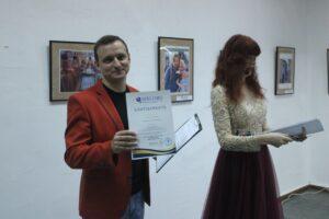 Вручение благодарственного диплома НЕВО-СОЮЗ от директора московской галереи Евгения Манакина певцу, Лауреату международных музыкальных конкурсов- Егору Трофимову.