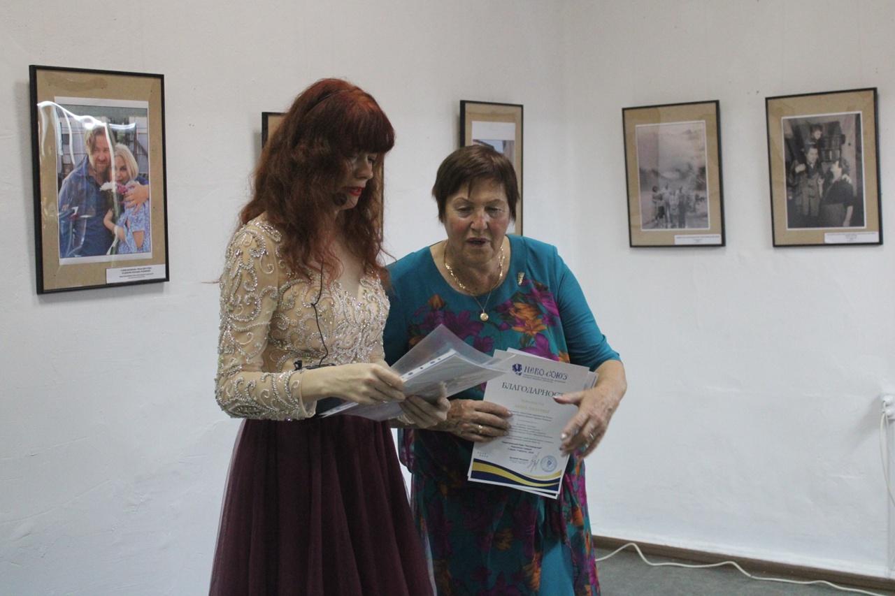 Вручение дипломов НЕВО-СОЮЗА и Евразийского художественного Союза от директора галереи Евгения Манакина и Генерального продюсера Филькова Фёдора Вонифатьевича Ларисе Прозоровой, журналисту, лауреату Премии Германа Лопатина.