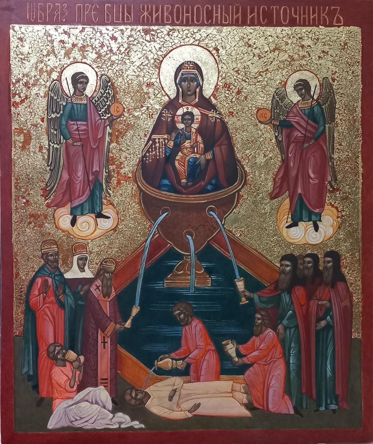 Я послала в Мексику фото таких икон как Живоносный хрустальный источник и образ Ангела-Хранителя. Я назвала Хрустальной Богородичную икону, потому что в работе использовала пигмент из горного хрусталя. Это мой эксклюзивный секрет.