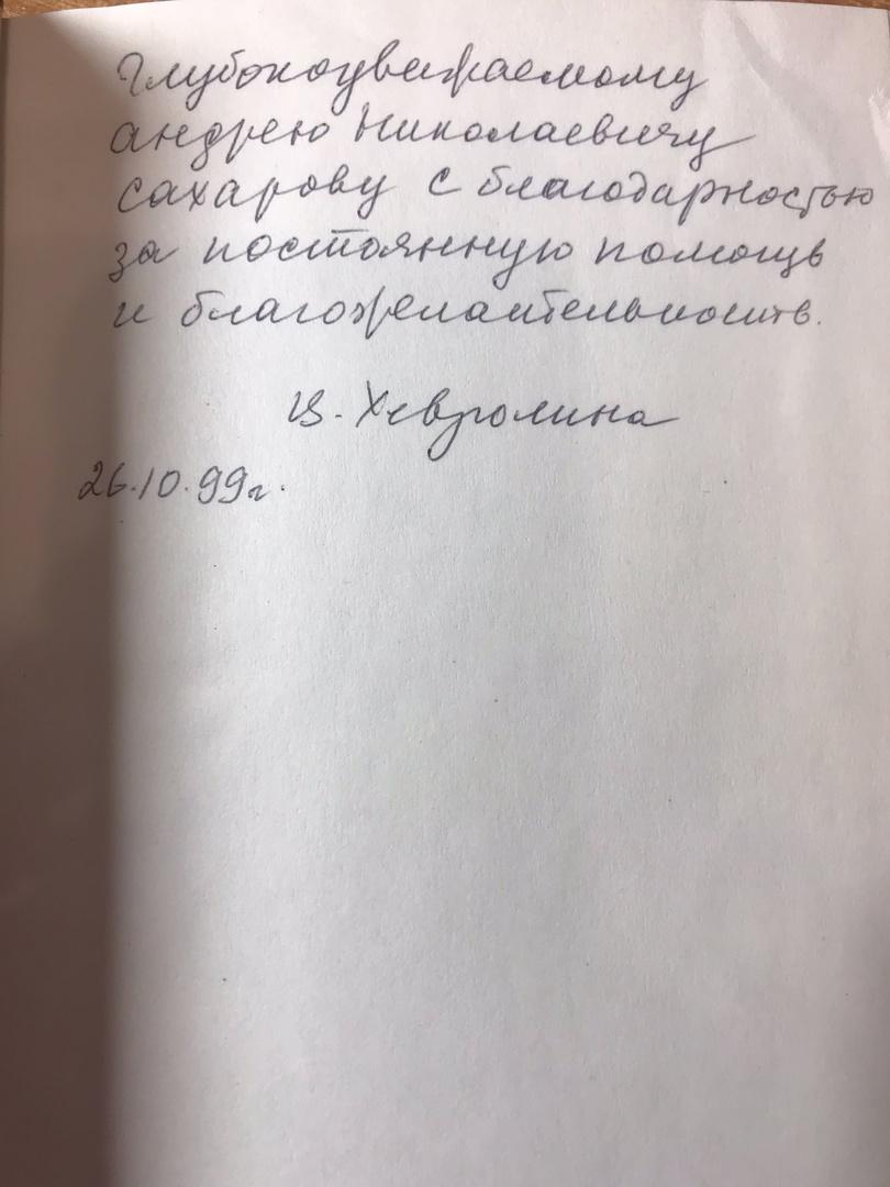 Ещё одна книга с автографом: на сей раз академику Сахарову, известному историку, автору учебников. Подписано составителем и публикатором.