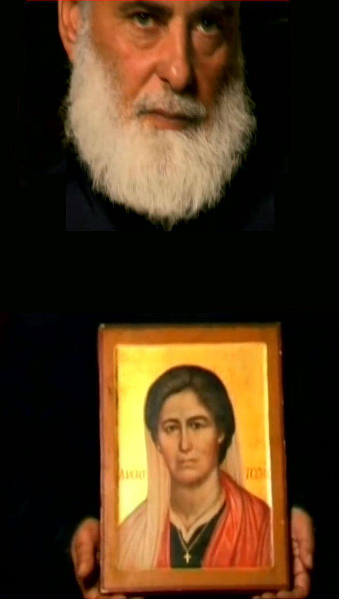 Архимандрит Иоаким Строгилос с иконой новомученицы Анастасии Елеонской