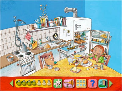 Игра “Шиворот-навыворот: что здесь не так?” позволит маленьким пользователям научиться замечать всевозможные различия и несоответствия, которых, конечно же, не должно быть, и которые обязательно нужно исправить! Например, почему снеговик решил забраться в духовку? Как может из крана литься песок, а не вода? Почему крокодил залез под кровать, чайник бегает по кухне, а ботинки вместо того, чтобы послушно стоять в прихожей, спрятались в холодильнике? Неужели какой-то озорной волшебник все специально смешал и перепутал? Давайте-ка разберемся в этом беспорядке, подумаем, что и где на самом деле должно находиться, и все расставим на свои законные места!