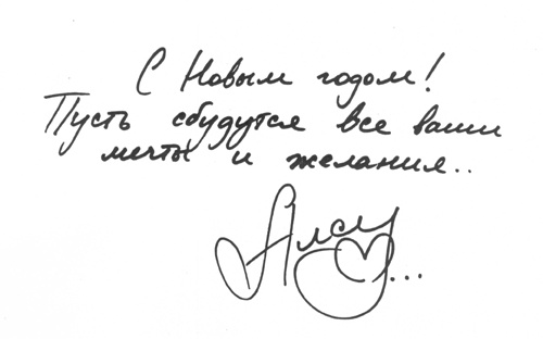Певица Алсу, новогоднее пожелание, автограф Автограф певицы Алсу