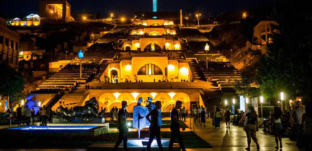 Вернулись в Ереван, пообедали, отдохнули. Выяснили, что у наших хозяев еще есть дочь, она замужем, и у ней есть сын Арам, которому 7 лет. Они тоже были в гостях у родителей и познакомились с нами. Арам очень послушный, воспитанный, стеснительный, но к нам потихоньку привыкает. Далее был обычный обильный ужин, небольшой отдых, а потом мы ездили вновь по вечернему Еревану. Это уже становится традицией – такие поездки. Думаю, что и в воспоминаниях моих этот город останется именно таким – вечерним, шумным, музыкальным, подсвеченным множеством огней с массой гуляющих по улицам местных жителей и туристов.