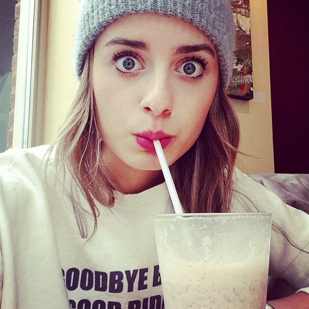 Это просто волшебная вещь. Как я могу это объяснить? Это, в принципе, как кефир. Только я молочные продукты не употребляю — у меня от молочка животик болит, так что это соя. И здесь больше чем 50 миллионов активных полезных бактерий. Это просто волшебная вещь для моего желудка. И они, серьезно, мне очень помогают. Я всегда говорила: “Ну, какие-то пустяки, ладно, мне это не надо”. Серьезно, мне это помогло. Потому что я заметила неделю назад: “Хей, у меня проблем нет с животом”. А что изменилось? Вот это изменилось!