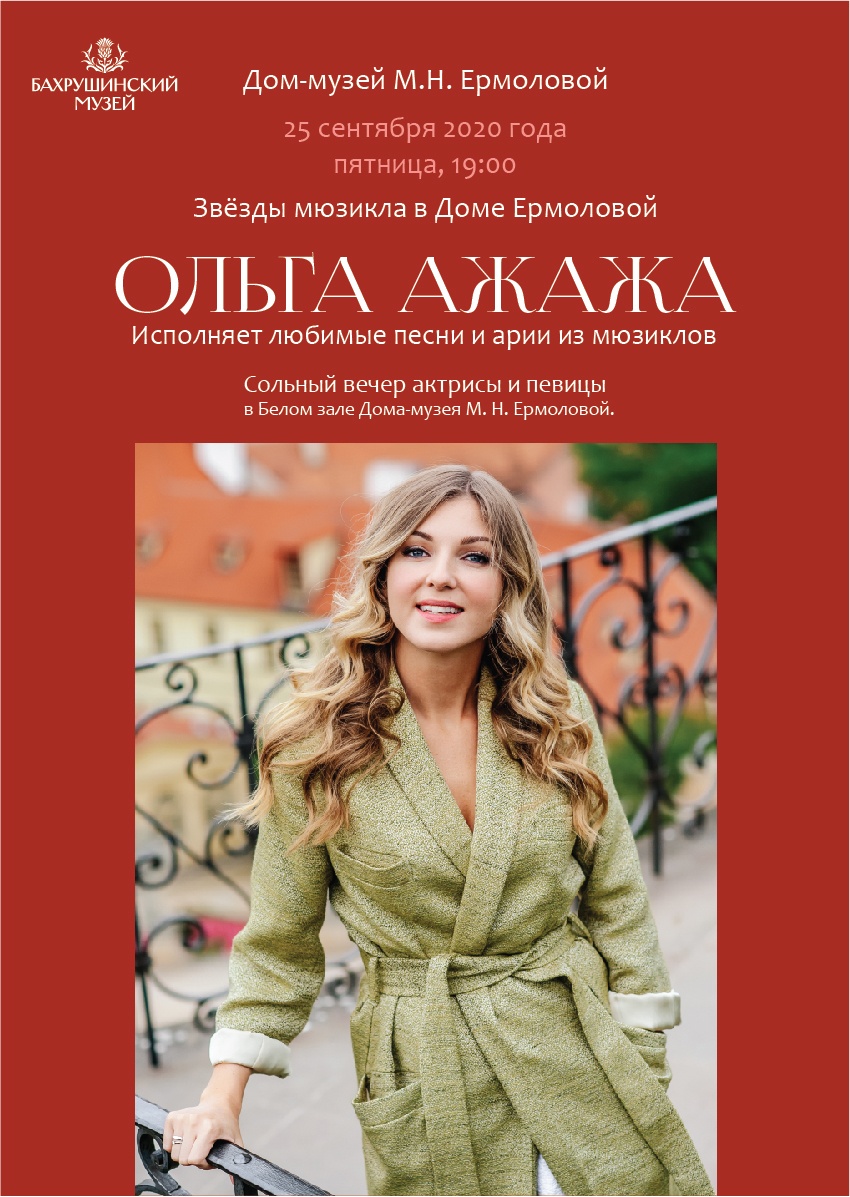 Первый вечер цикла состоится уже 25 сентября в 19:00. Актриса и певица Ольга Ажажа исполнит для вас любимые песни и арии из мюзиклов под аккомпанемент рояля.