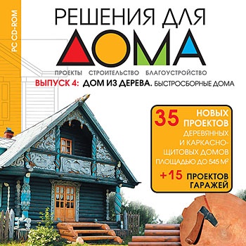 На этом диске вас ждут 35 готовых проектов деревянных и каркасно-щитовых домов площадью до 545 квадратных метров, а также 15 проектов гаражей!