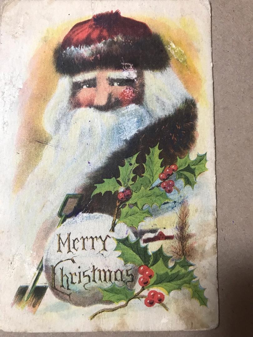 Самая старая на сегодня открытка в моей филокартической коллекции. Рождественская, с Дедом Морозом (Санта-Клаусом) Напечатана в США, отправлена из Лос-Анджелеса 24 декабря 1915 года в 2.30 пополудни. На открытке также изображён традиционный для Западного Рождества остролист — растение с зелёными листьями и красными ягодами. Вдали угадывается дерево и американская заснеженная деревушка.