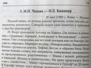 Книга очень хорошая. Половина объёма — это Воспоминания современников о Марии Павловне, а другая половина — ее переписка. Здесь же представлены и небольшие фрагменты переписки с О. Л. Книппер, всего 2-3 десятка писем из огромного количества. Сейчас изданы в двух томах все сохранившиеся 1300 писем их корреспонденции, которые я тоже сейчас с удовольствием читаю.