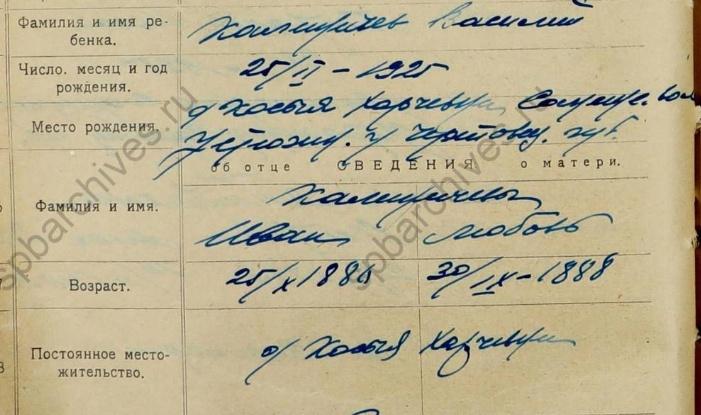 Второй человек, которого я тоже помню по похоронам, этот баба Люба Калиничева (на фото в белом платочке). Говорили, что она прожила очень много, больше 90 лет. В самом раннем детстве тоже помню ее похороны. Я всегда мечтал найти данные о том, когда же она родилась, чтобы понять, насколько давних людей я запомнил в жизни. И вот вчера, работая в архиве, обнаружил запись о рождении её сына, Василия в 1925 г. А в этой записи указан не просто возраст родителей, а даже точные даты их рождения.