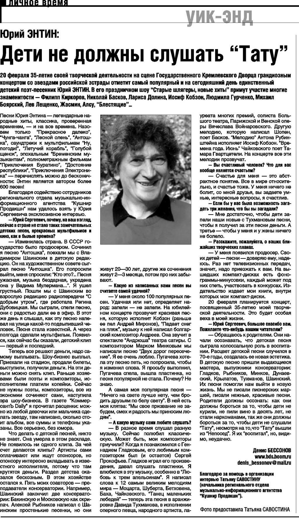 Благодарю за помощь в организации интервью Татьяну Савостину (начальника регионального отдела музыкально-информационного агентства «Кушнир Продакшн»). Фото предоставила Татьяна Савостина.